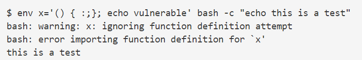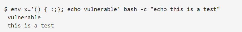 (){ :;}; 취약한 구문과 함께 vulnerable을 출력하니, this is a test가 나오는것을 확인할 수 있다.