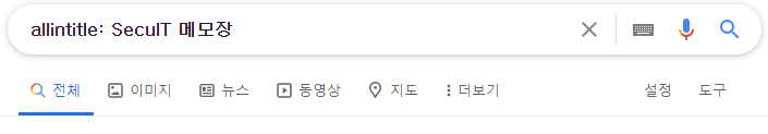 | allintitle | intitle: 명령어와 같은 기능을 하지만 여러 개의 검색어를 모두 포함된 결과만을 표시합니다 (예: allintitle: SecuIT 메모장) ![]() |