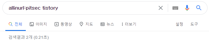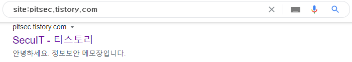 | site | 해당 웹사이트에서 색인된 결과만을 보여줍니다 (예: site:pitsec.tistory.com) ![]() |