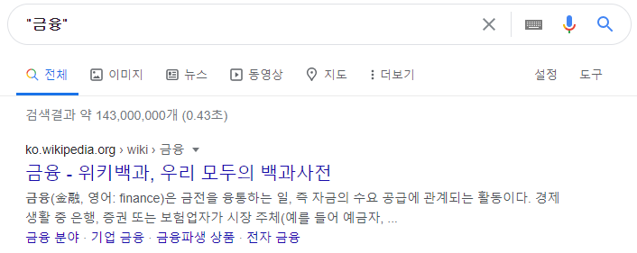 | " " | 큰따옴표 안에 검색어를 입력하면 검색어를 반드시 포함하는 결괏값만 표시합니다 (예: "금융")![]() |