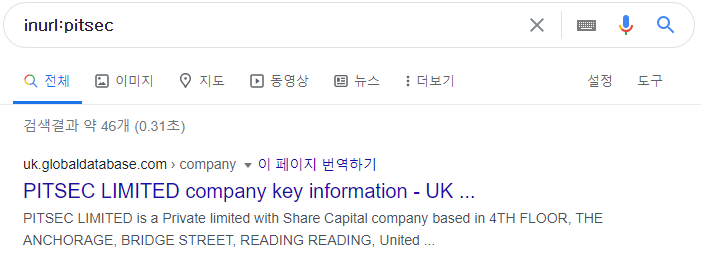 | inurl | 페이지 URL에 특정 검색어가 포함된 페이지를 찾도록 명령하는 기능을 합니다 (예: inurl:pitsec) ![]() |