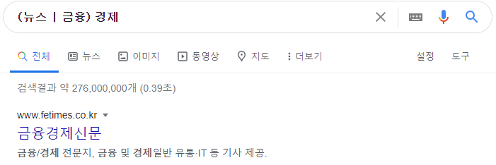 | | | 두 가지의 검색어중 하나의 검색어라도 일치하는 결괏값을 보여줍니다 (예: 경제 | 금융)![]() |