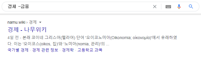 | – | 특정 단어를 제외한 나머지 검색 결과를 보여줍니다 (예: 경제 -금융) //- 뒤에 띄어쓰기 금지!!![]() |