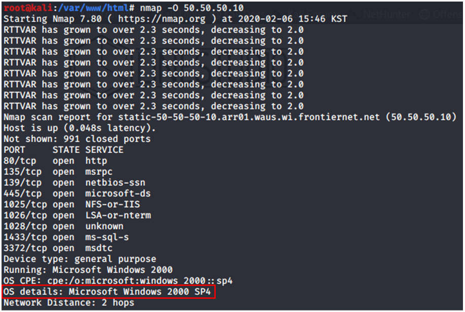 [그림 3-2] Nmap을 이용한 웹 서버 스캔 결과