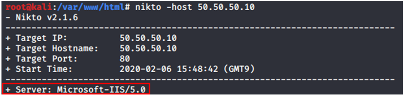 [그림 3-3] Nikto를 이용한 웹 서버 스캔 결과