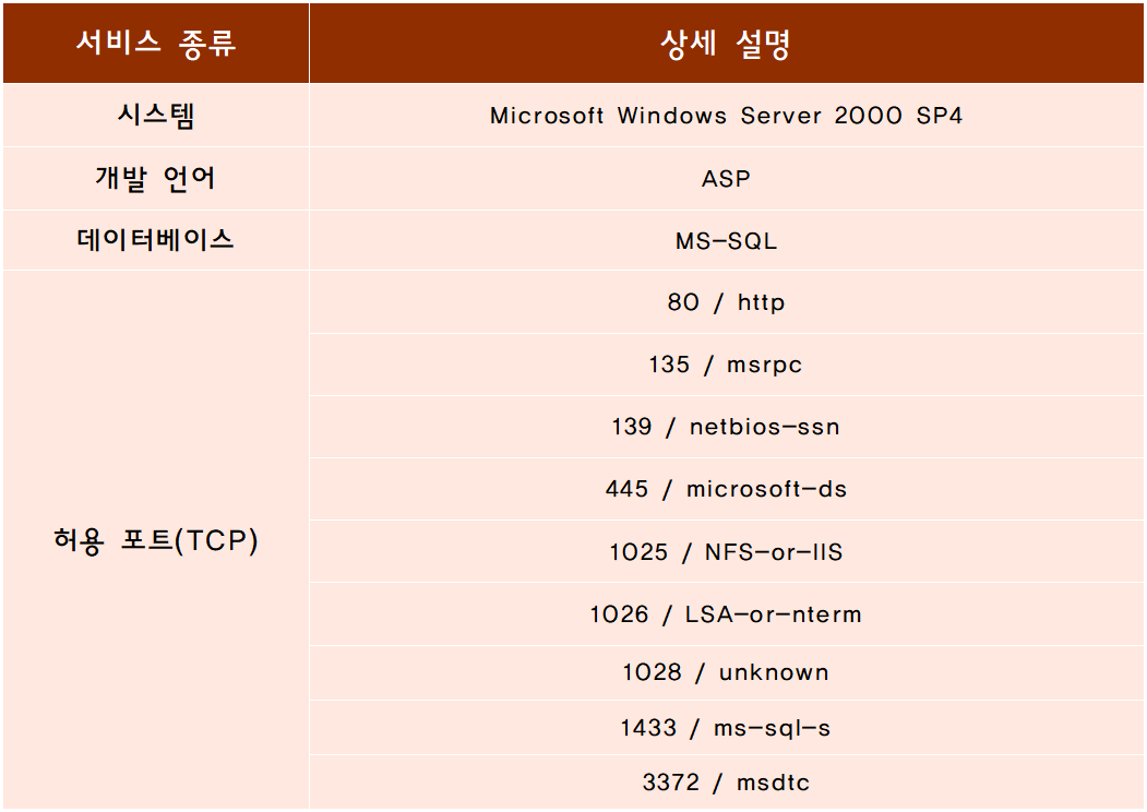 그리고 Database는 MMSQL을 사용하며 총 9개의 포트가 열려있었습니다.