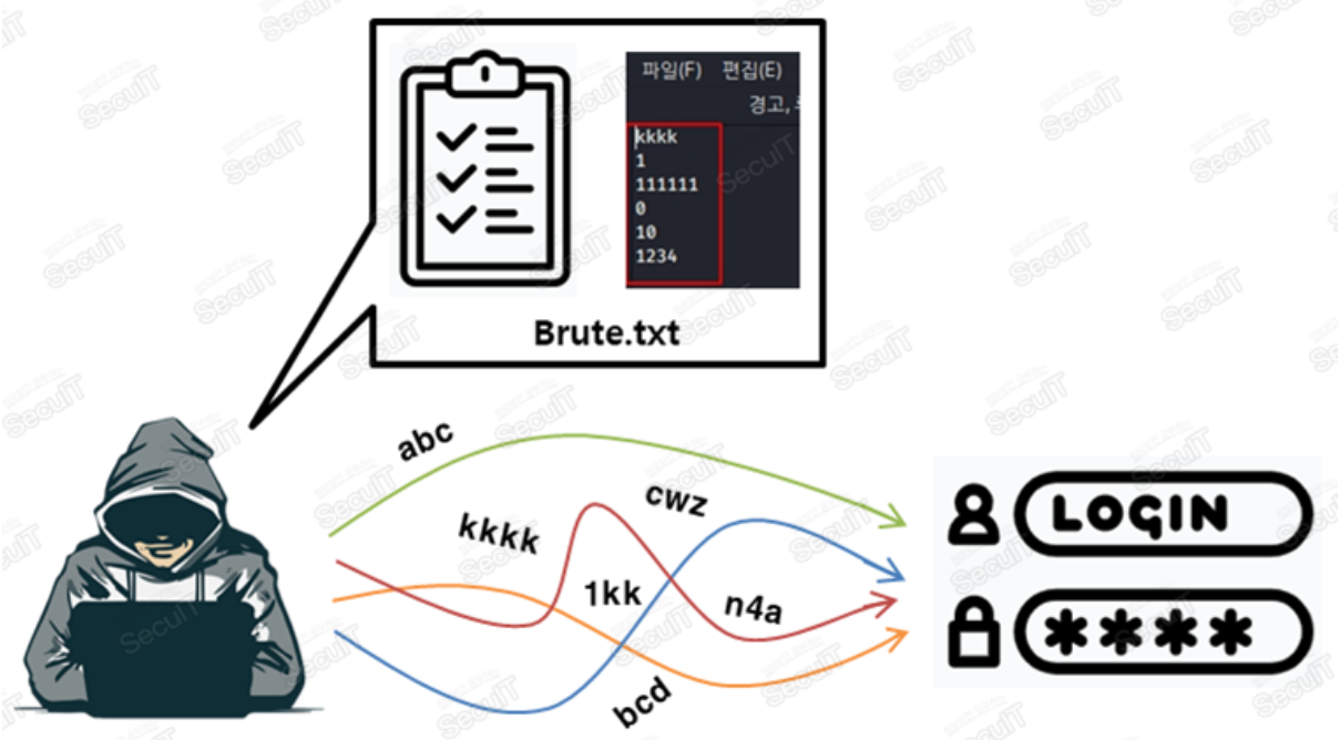 [그림 3-4]는 Brute Force의 심화 공격인 사전 대입 공격이다.