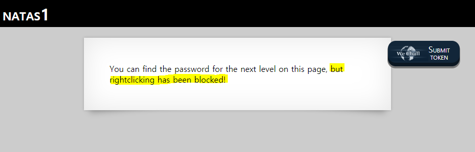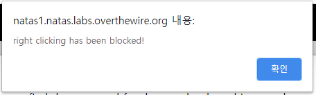 페이지에 입장하게 되면 해당 페이지에서도 다음 레벨로 가기 위한 비밀번호를 찾아야 한다는 문구가 노출됩니다. 그러나 오른쪽 클릭버튼이 막혀있다고 합니다.