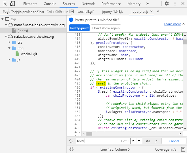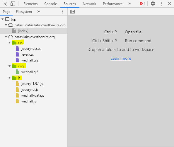 css, img, js 디렉터리가 있는것을 확인할 수 있고 해당 파일들에 다음 레벨로 집입할 수 있는 비밀번호가 숨겨져 있을거라 예상됩니다.