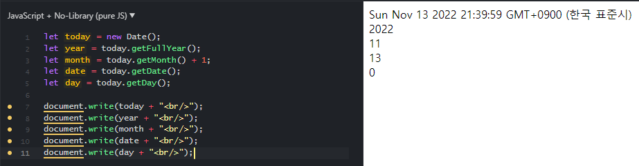 그리고 객체 내 담겨있는 정보들을 여러가지 Date 메서드를 통해 반환시켜야 합니다.