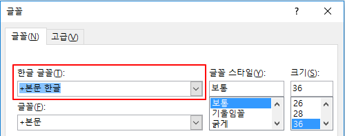 - 글꼴 바꾸기(toolbar에서) Ctrl + Shift +F 하고 Arrowkey