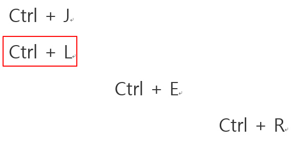 | Ctrl + L | 단락 왼쪽 맞춤 |