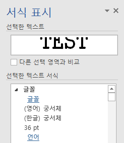 | Shift + F1 | 텍스트 서식 검토 (F1을 누른 다음 서식을 검토할 텍스트 선택) |